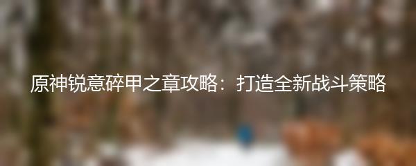 以上就是为大家带来的“原神锐意碎甲之章攻略:打造全新战斗策略”的内容。通过熟悉敌人的弱点、合理搭配队伍、掌握元素反应、积极利用队伍技能和不断提升角色能力,相信您可以在锐意碎甲之章中取得更好的战绩。希望以上攻略对您有所帮助,祝您游戏愉快!