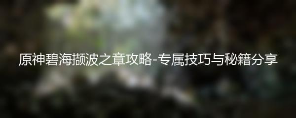 原神碧海撷波之章攻略-专属技巧与秘籍分享