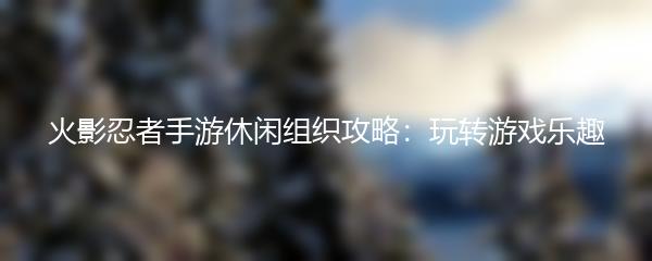 火影忍者手游休闲组织攻略:玩转游戏乐趣