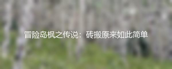 以上就是为大家带来的《冒险岛枫之传说:砖搬原来如此简单》。无论是新手还是老玩家,都可以通过砖搬任务来锻炼自己的技巧。快来冒险岛枫之传说中,挑战自己的极限吧!