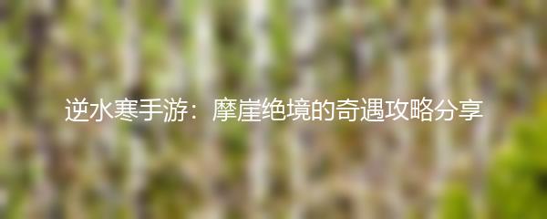以上就是为大家带来的逆水寒手游摩崖绝境奇遇攻略分享,希望能对喜欢这款游戏的玩家们有所帮助。在探索摩崖绝境的过程中,记住挑战自己,发挥智慧和团队合作的力量,相信你一定能够克服挑战,取得辉煌的成就!