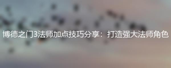 以上就是博德之门3法师加点技巧的分享,希望对大家有所帮助。通过合理的加点和战斗策略,相信你可以打造出强大的法师角色,在游戏中取得胜利。