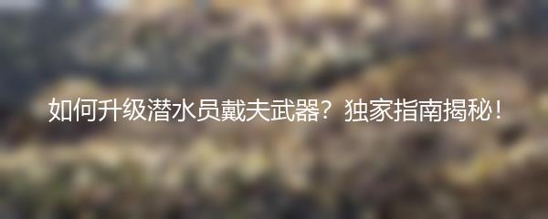 如何升级潜水员戴夫武器?独家指南揭秘!