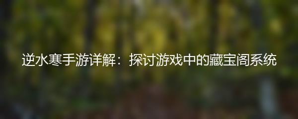 逆水寒手游详解:探讨游戏中的藏宝阁系统