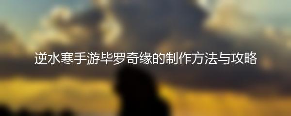 逆水寒手游毕罗奇缘的制作方法与攻略