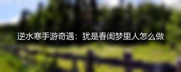 逆水寒手游奇遇:犹是春闺梦里人怎么做