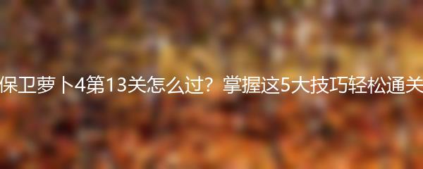 保卫萝卜4第13关怎么过?掌握这5大技巧轻松通关