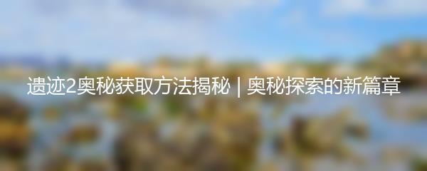遗迹2奥秘获取方法揭秘 | 奥秘探索的新篇章