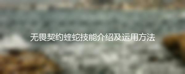 - 敏捷灵活的思维:蝰蛇象征着敏捷和智慧,无畏契约蝰蛇技能可以帮助人们培养出灵活的思维方式。