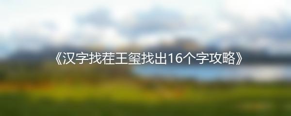 以上就是为大家带来的《汉字找茬王玺找出16个字攻略》。王玺通过深入理解汉字、注重细节、锻炼观察能力、创造独特方法以及坚持不懈,成功找出了16个字。希望这些攻略对大家在汉字找茬游戏中有所帮助。