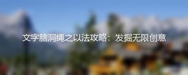 以上就是为大家带来的《文字脑洞绳之以法攻略:发掘无限创意》。文字脑洞绳是一把开启创造力之门的钥匙,只要我们善于运用,勇于突破,一定能够创作出令人称赞的作品。