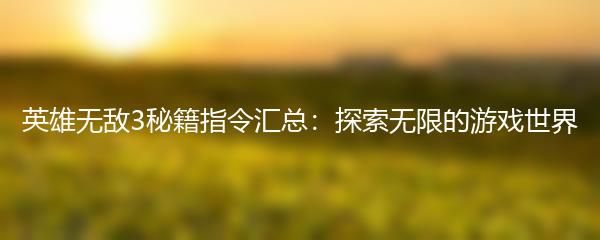 随着科技的发展和游戏行业的进步,英雄无敌3已经成为了一款备受玩家喜爱的经典游戏。对于很多玩家来说,掌握一些秘籍指令是成为英雄无敌3的高手的关键。在这篇文章中,我们将为大家总结一些最实用的英雄无敌3秘籍指令,帮助你在游戏中探索无限的世界。