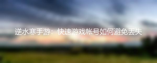 逆水寒手游是一款备受玩家喜爱的在线游戏,然而很多用户都存在快速游戏帐号丢失的担忧。如何有效避免这种情况的发生呢?本文将为大家详细介绍。同时也希望通过本文的分享,让广大玩家能够更好地保护自己的账号安全。
