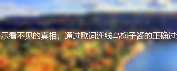 在我们生活的世界中,有许多看不见的真相隐藏在我们周围。这些真相可能是隐藏的事实,也可能是情感的真实感受。而歌词就是一种用音乐表达情感和揭示真相的方式。在本文中,我们将通过歌词连线乌梅子酱的正确过法,来逐渐揭示这些看不见的真相。