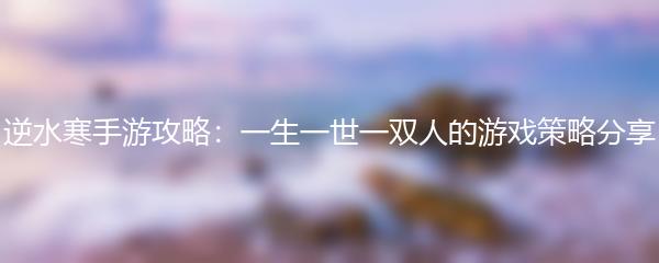 逆水寒手游攻略:一生一世一双人的游戏策略分享