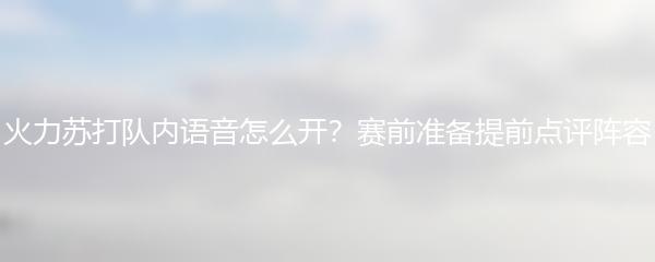 以上就是为大家带来的“火力苏打队内语音怎么开?赛前准备提前点评阵容”的内容。希望对大家有所启发和帮助!