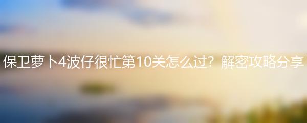 保卫萝卜4波仔很忙是一款深受玩家喜爱的塔防游戏,其中的第10关备受挑战。在这篇文章中,我们将为大家分享如何顺利通关第10关的解密攻略,助你轻松取得胜利。