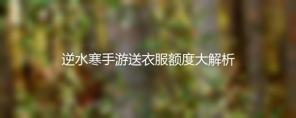 逆水寒手游送衣服额度是玩家关注的重要问题,本文将为您详细解析逆水寒手游送衣服额度的相关内容。