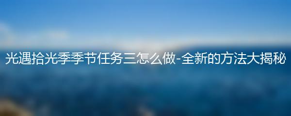 以上就是为大家带来的光遇拾光季季节任务三的全新方法。通过准确定位任务地点、收集所需道具、解开谜题、完成挑战以及领取奖励,您将轻松完成任务三,赢得丰厚奖励。相信本文的指南对您在光遇拾光季中取得成功将会有所帮助。
