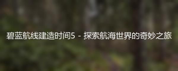 碧蓝航线建造时间5 - 探索航海世界的奇妙之旅