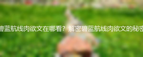 碧蓝航线肉欲文在哪看?解密碧蓝航线肉欲文的秘密