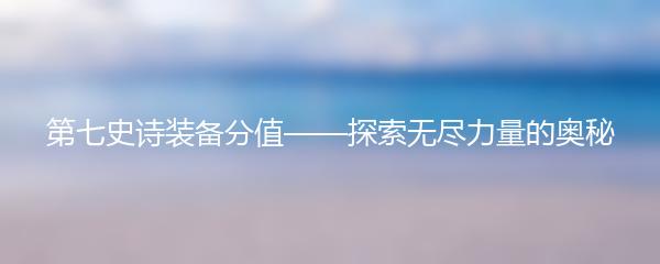 第七史诗装备分值的来源可以追溯到古老的神话故事中。传说中,有七位神明守护着不同的领域,而这些神明所释放出的力量被封印在了七个史诗装备中。这些装备经过无数年的积累和传承,形成了如今的第七史诗装备。
