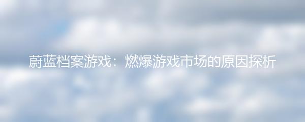 蔚蓝档案游戏:燃爆游戏市场的原因探析