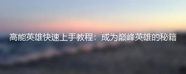 高能英雄快速上手教程:成为巅峰英雄的秘籍
