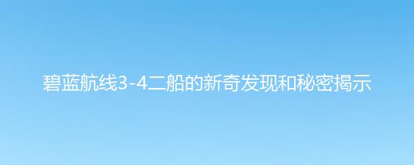 碧蓝航线3-4二船的新奇发现和秘密揭示
