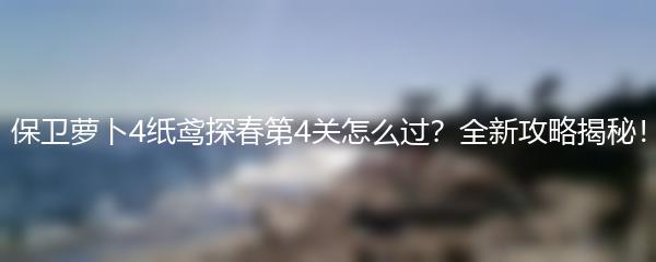 保卫萝卜4是一款备受玩家喜爱的策略游戏,而纸鸢探春的第4关却是让许多玩家左右为难的难关。那么,该如何顺利过关呢?在本文中,我们将为您揭秘全新攻略,助您轻松解锁纸鸢探春第4关。