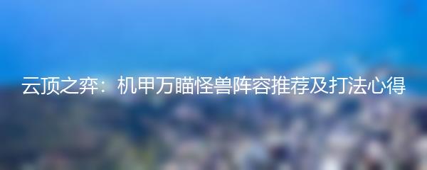 以上就是为大家带来的《云顶之弈:机甲万瞄怪兽阵容推荐及打法心得》。通过合理的阵容搭配和策略调整,相信你能在游戏中获得胜利!加油!