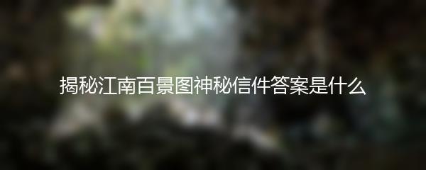 以上就是为大家带来的《揭秘江南百景图神秘信件答案是什么》的内容。江南百景图是一个充满神秘和魅力的谜题,它引发了无数人的好奇心和兴趣。希望通过这篇文章,能激发更多人对江南百景图的关注,一起揭开这个古老谜团的答案。