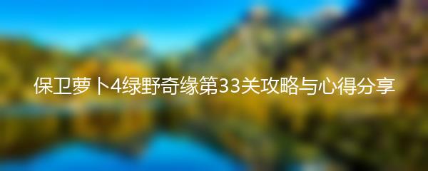 以上就是保卫萝卜4绿野奇缘第33关攻略与心得分享。在充分熟悉地图布局的基础上,合理配置防御塔、升级塔的技能、利用道具以及灵活调整战略将帮助您顺利通关。希望这些攻略和心得对您有所帮助,祝您游戏愉快!