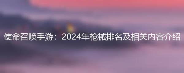 使命召唤手游:2024年枪械排名及相关内容介绍