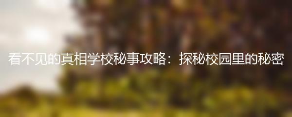 看不见的真相学校秘事攻略:探秘校园里的秘密