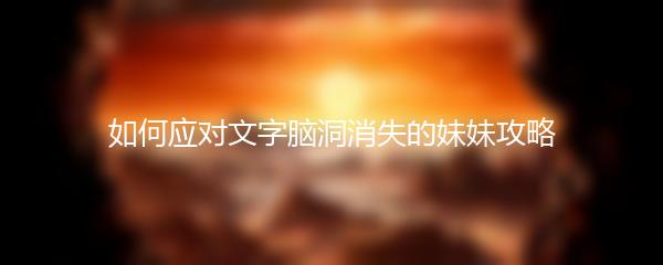 如何应对文字脑洞消失的妹妹攻略