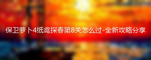 以上就是为大家带来的保卫萝卜4纸鸢探春第8关的全新攻略分享。通过合理布局防线、合理利用技能、升级角色属性、观察敌人行动和多次尝试与总结经验,相信大家能够顺利通关这一关卡。希望以上攻略能对大家有所帮助,祝愿大家在游戏中取得好成绩!