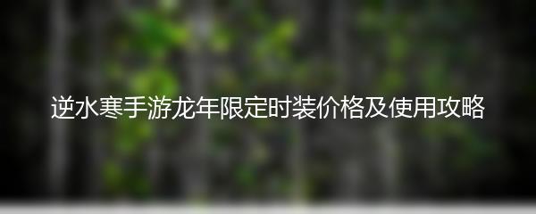 以上就是为大家带来的"逆水寒手游龙年限定时装价格及使用攻略"。如想获得这些独特的时装,玩家们可以按照上述攻略参考,合理购买和使用限定时装,让自己在游戏中更加独特和引人注目。