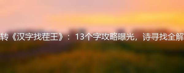 玩转《汉字找茬王》:13个字攻略曝光,诗寻找全解析
