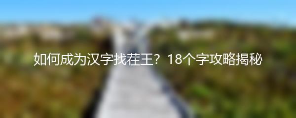 通过这18个字的汉字找茬王攻略,我们可以看到成为汉字找茬王不仅需要耐心和细心,更需要不断的观察、分辨细节和制定策略。只有通过反复练习和积累经验,才能在汉字找茬的游戏中获得更好的成绩。希望这些攻略对大家有所帮助,快来挑战一下,成为真正的汉字找茬王吧!