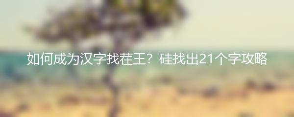 以上就是为大家带来的如何成为汉字找茬王的硅找出21个字攻略。通过提高专注力、训练记忆力、分析和比较、创造方法和策略以及练习耐心和坚持,相信你能够在汉字找茬游戏中取得更好的成绩。加油吧,成为真正的汉字找茬王!