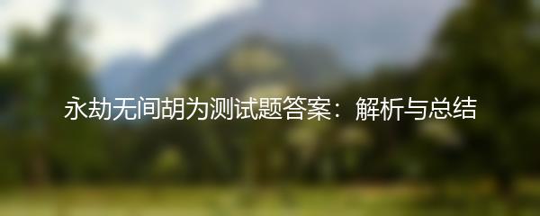 在这篇文章中,我们将对永劫无间胡为测试题答案进行解析与总结。通过分析答案的相关内容,我们可以了解到胡为测试题的核心思想和解决方法。