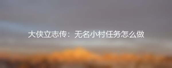 以上就是为大家带来的《大侠立志传:无名小村任务怎么做》的详细攻略,希望能够帮助到各位玩家顺利完成任务,享受游戏的乐趣。