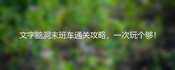 以上就是为大家带来的文字脑洞末班车通关攻略,通过深入理解游戏规则、锻炼思维的灵活性、多角度思考问题、练习文字能力以及与他人交流分享,相信你能在文字脑洞末班车中游刃有余,轻松通关!快来挑战这款令人上瘾的文字解谜游戏吧!