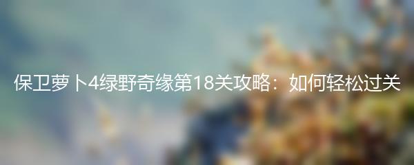在保卫萝卜4绿野奇缘的世界中,玩家们常常会遇到游戏过关的难题。本文将为大家分享保卫萝卜4绿野奇缘第18关的过关攻略,帮助您轻松应对挑战。