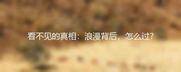 以上就是为大家带来的“看不见的真相:浪漫背后,怎么过?”这篇关于浪漫背后的内容。希望通过本文的探讨,能够帮助大家更好地了解爱情的真实与浪漫的关系,并在人生旅途中创造出属于自己的幸福。