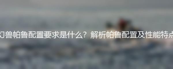 帕鲁作为一款高性能的幻兽,在配置和性能方面也有着出色的表现。