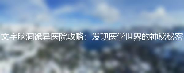 文字脑洞诡异医院攻略是一篇揭示医学世界神秘秘密的文章,让我们一起深入探索医学的未知领域。