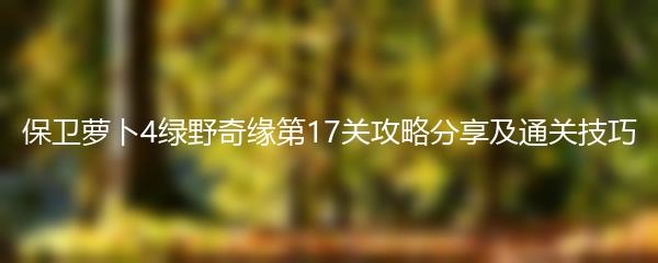 以上就是为大家带来的《保卫萝卜4绿野奇缘第17关攻略分享及通关技巧》,希望这些技巧对大家通关第17关有所帮助。记住,合理布局防御塔,提升等级和技能,合理使用增益道具,并不断观察和总结经验,相信你一定能够成功保卫萝卜!