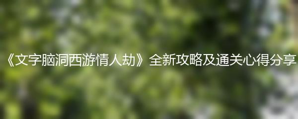 以上就是为大家带来的《文字脑洞西游情人劫》全新攻略及通关心得分享。希望这些技巧和建议能够帮助您在游戏中取得更好的成绩。记住,选择合适的角色,善用技能与道具,制定合理的战略,加强装备与培养角色,并与其他玩家交流与合作,相信您一定能通关并取得胜利!加油!